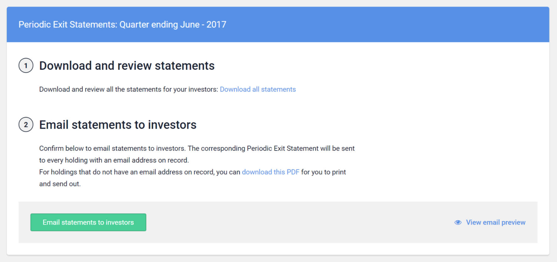 - Once satisfied the reports are complete and accurate, email the reports to relevant investors by clicking on "Email statements to investors".